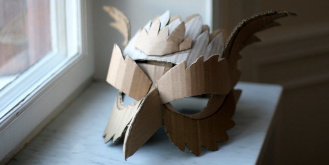Следующий важный момент — маска. На фото ниже показан вариант красивой картонной маски грифона. Сначала вырежьте части, а затем склейте их вместе и раскрасьте.