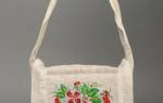 - Затем сшить две детали, вывернуть, пришить ручку и обработать край сумки тесьмой, кружевом или кожей.