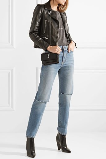 Короткие куртки из кожи – лучший вариант для совместного лука с бойфрендами. Больше всего подойдут косухи, но и классические модели смотрятся очень эффектно.
