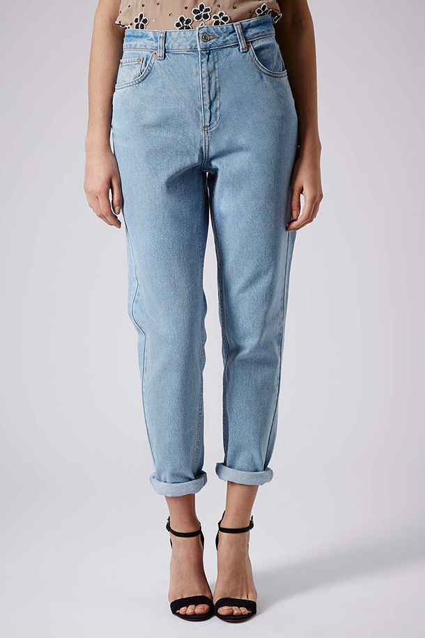 Mom jeans или «мамины джинсы» берут начало в 80-90-х. В те годы женщины носили брюки вольного кроя с завышенной талией. Снизу они слегка сужались. Края у данного фасона могут быть подвернутыми, простроченными и с торчащими нитками. Мом джинс выгодно подчеркивают фигуру и удлиняют ноги.
