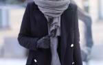 - Палантины ярких цветов лучше всего прятать под низ, чтобы их часть выглядывала из ворота пальто или окутывала шею.