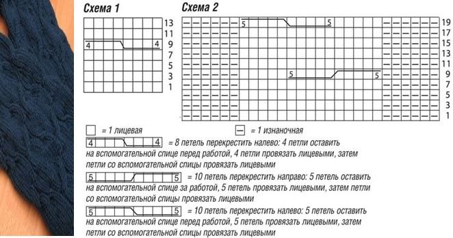- Выполнить раппорт по схеме 1. После завершения этого узора на спицах останется 56 петель.