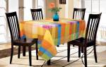 И главное – скатерть должна гармонировать с окружающим интерьером. А будет она с ним сливаться или притягивать внимание контрастной расцветкой – решать вам. В крайнем случае можно заказать или сшить своими руками чехлы для стульев из той же ткани, из которой сделана скатерть. Фото и выкройки вы без труда отыщете на форумах мастериц. Тогда в вашей столовой появится полноценная обеденная группа, выполненная в едином стиле.