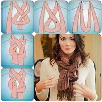 Довольно оригинально выглядит шарф завязанный на узел, как на схеме:
