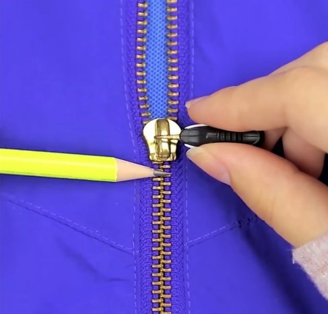 Заедание змейки часто возникает даже на качественных изделиях, решить эту проблему можно самостоятельно при помощи простого карандаша. Следует подготовить грифель. Необходимо использовать только мягкий тип, так как жесткий не смажет механизм в нужной степени. После этого им нужно провести 4-5 раз по внутренней части замка. После применения такого способа змейка будет застегиваться без заеданий. Также вместо грифеля карандаша можно использовать мыло, свечи и различные смазочные вещества. Однако до того как на куртке починить молнию, важно обратить внимание на материал, из которого выполнена вещь, продумать возможность очищения пятна в случае попадания средства на поверхность изделия.