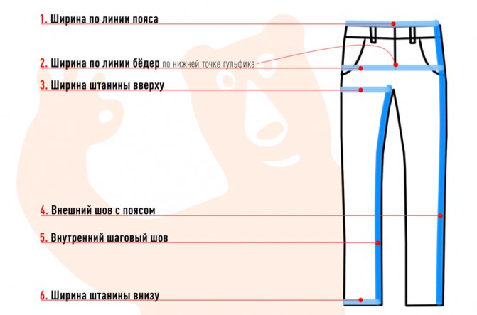 В случае если нет возможности измерить себя, можно снять мерки с готовых брюк:
