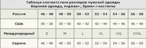 Таблица размеров одежды для мужчин (джемпера, куртки, халаты, жилеты и так далее)