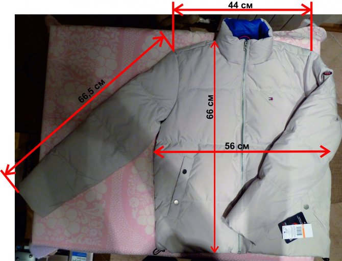 - Нижняя часть куртки измеряется в расстоянии от одной крайней точки снизу до второй.