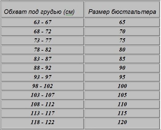 Разобраться, как правильно подобрать бюстгальтер по размеру, поможет таблица. В ней нужный параметр определяется с учетом обхвата подгрудной области.