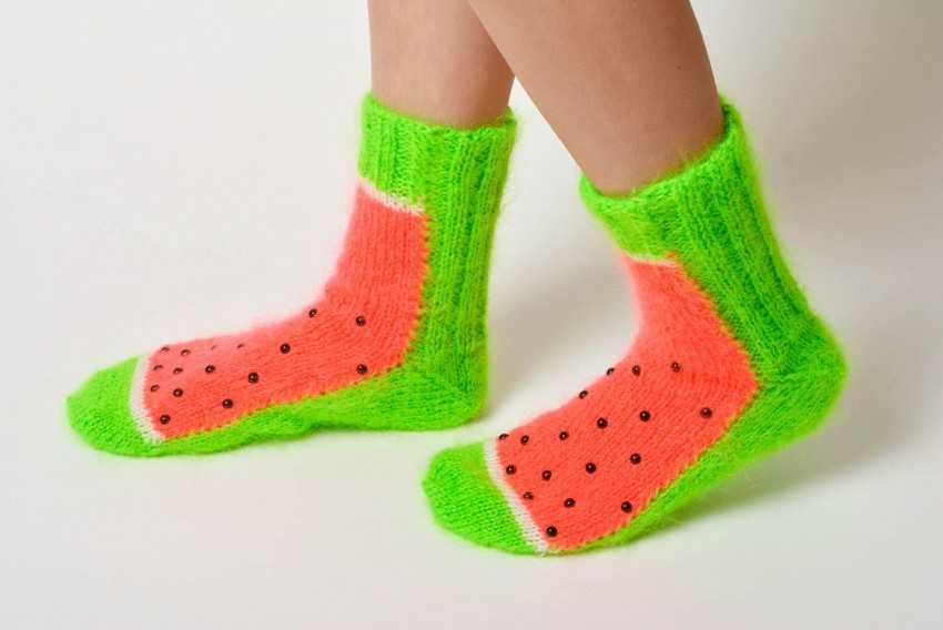 Как видно на фото вязаных носков, для их изготовления могут использоваться следующие инструменты: