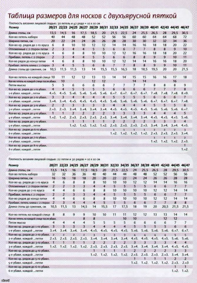 Только в таблице нет 46 – 47 размеров. Итак, на 46 размер стоит связать носки длиной 31 см, а на 47 – 31,7 см.