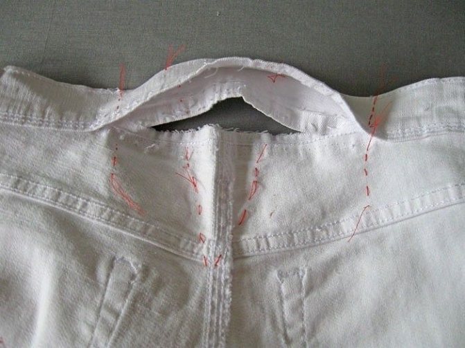 - Аккуратно распороть пояс, но всего на десять сантиметров влево и вправо от среднего шва изделия.