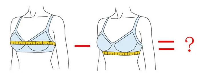 Первый шаг — измерение объема под грудью, второй — произведение замеров по высшим точкам груди.
