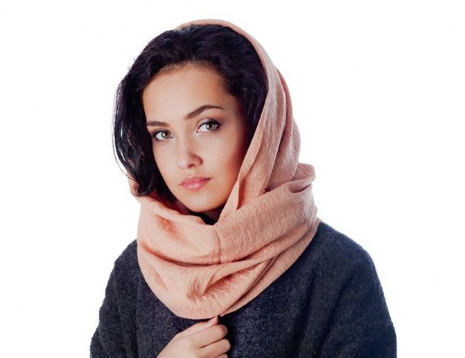 - Снуды – прямоугольные шарфы со сшитыми краями, играют больше декоративную роль, а также хороши в качестве накидки на голову.