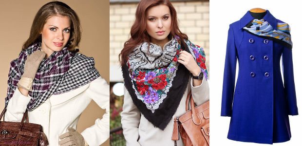 Подбирать их следует и в соответствии с общим стилем одежды. К роскошному манто вряд ли подойдут грубые модели из толстой ткани или пряжи. Идеально сочетаться с ним будут только плотный шелк или легкий кашемир. К пуховикам следует подобрать жаккардовые изделия или вязаные полотна из плотной пряжи с рельефными узорами.