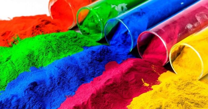 Промышленные красители обычно выпускаются в порошковой форме либо в виде паст и эмульсий. Они просты в использовании, хотя и требуют точного соблюдения пропорций и строгого следования технологии. Выбор химических красителей по цветам огромен, при желании их можно смешивать между собой с получением новых оттенков. К химическим относятся также разные анилиновые красители, в том числе применяемые в медицине (например, зеленка).