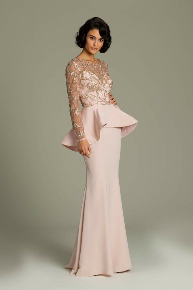 Длинное платье с эффектной баской – прекрасное решение для торжественного выхода. Присмотритесь к моделям с узкой юбкой, они невероятно женственны, привлекательны. Силуэтное платье, плотно облегающее бедра и стремительно расширяющееся книзу, стильно смотрится в дополнении трендового элемента.