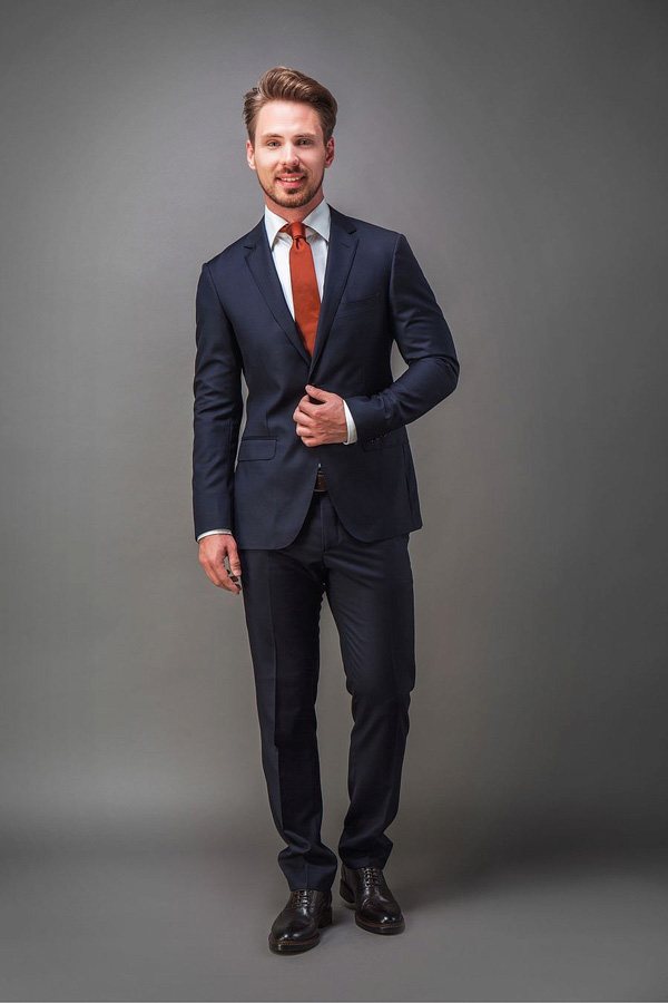 Синий цвет в мужском гардеробе называют новым черным. Такие костюмы универсальны. Чистый синий цвет костюмов стал популярным совсем недавно, а вот темно-синий уже считается классикой.
