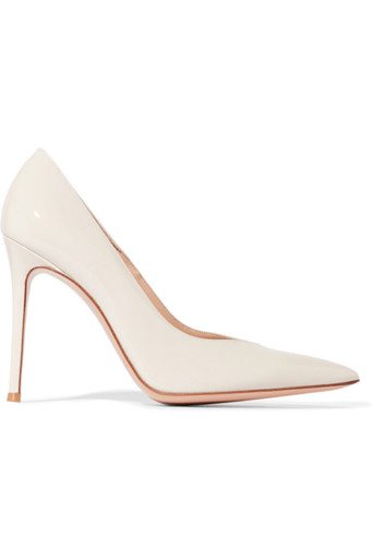 Для создания вечернего образа можно подобрать туфли в цвет костюма, обувь обязательно должна быть на каблуке. Идеальным выбором является шпилька. Эффектно будут выглядеть черные или белые лаковые туфли, либо обувь цвета золота.