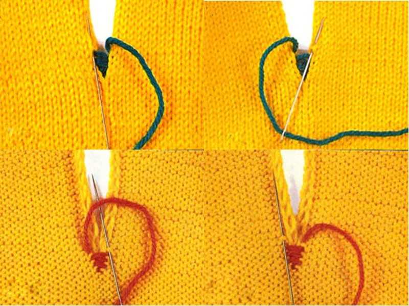 Связав нужное количество рядов, необходимо перейти на обвязку полотна. Шесть рядов провязать платочной вязкой (все ряды провязываются лицевыми петлями). Закрываются петли с помощью крючка. Рабочую нить отрезать, оставив конец длиной 20-30 см. для сшивания. При помощи иглы для сшивания трикотажных изделий соединить кромочные петли с обеих сторон вязаного полотна между собой.