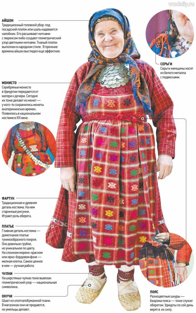 - Национальной удмуртской одеждой являлся халат — шортдэрем, белого, серого, охристого или красного цветов;