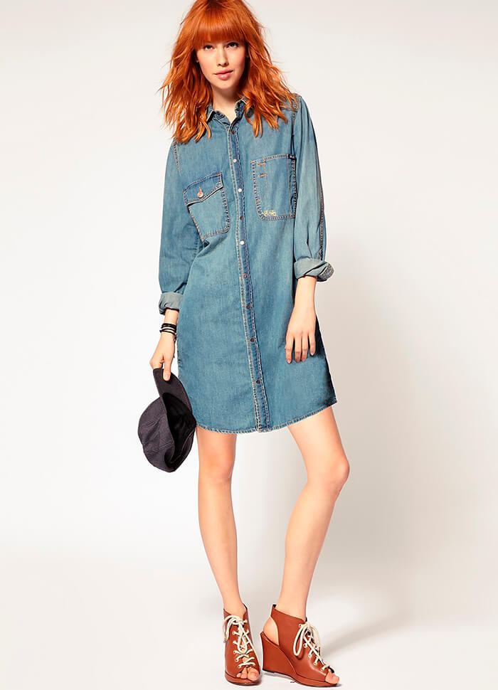 Одежда из денима непременно должна быть в Вашем модном гардеробе и одними лишь джинсами здесь не обойтись, ведь безумно красивыми окажутся джинсовые платья, выполненные в фасоне футляр, мини платье с кокетливыми оборками или джинсовое платье-сарафан.