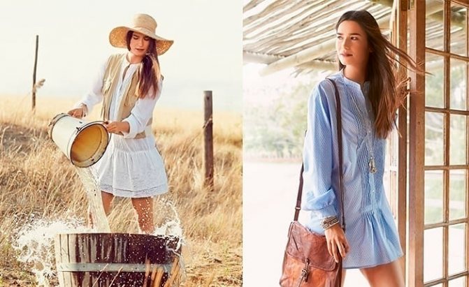 Богемный стиль – это обилие цветов, этнических мотивов и орнаментов разных народностей. Также здесь ненавязчиво проскальзывают элементы современного хиппи и европейского барокко. Для пошива наряда используются легкие, натуральные материалы, которые создают видимость воздушности и легкости. В отделке часто применяется кружево. Допускается смешивать различные фактуры ткани, использовать декор.