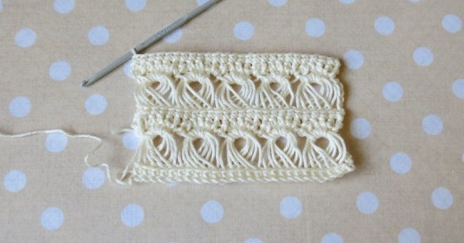 - 3 р. — между столбиками с накидом провязывается пышный столбик, затем ССН. Так чередуют весь ряд.