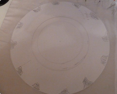 - Сделать выкройку (верхний полный круг диаметром 30 см, нижний неполный — 17,5 см).