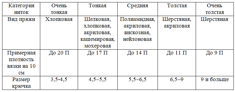 Вязка получается более плотной при работе с крючком меньшего размера. Для объемных узоров обычно берут инструмент большего диаметра. Для подбора номера вручную нить кладется в выемку крючка и протягивается. Если головки инструмента при этом не видно, он тоньше, чем нужно. При работе с таким крючком получится изделие повышенной плотности, пряжа может расслаиваться. Если же головка инструмента не закрывается нитью, его размер слишком большой, и готовая вещь будет рыхлой. При полном укладывании нити в головке крючка готовое изделие получится «петелька к петельке».