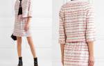 Пиджак в стиле Шанель – воплощение женственности и элегантности. Он представляет собой укороченный жакет с круглым вырезом, украшенный контрастной тесьмой, косами, лентами либо рюшами. Отличительная особенность легендарного предмета одежды – отсутствие воротника. Можно найти вязаные воздушные изделия. Эта модель превосходно смотрится с юбкой-карандашом, платьем или классическими брюками. Лучше всего будет выглядеть на стройных девушках с фигурой «песочные часы», однако при другом телосложении также можно подобрать отличный вариант.