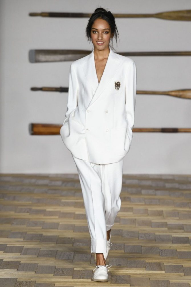 С белым жакетом сочетаются практически любые вещи. Ошибку в составлении образа допустить сложно. Для того чтобы составить стильный «лук», можно надеть белый пиджак и брюки того же цвета, а топ лучше выбрать с принтом. Это идеальный образ на каждый день. Девушкам, которые отдают предпочтение официальному стилю в одежде, классические брюки и черные лаковые туфли отлично подойдут к белому жакету. А вместо топа можно надеть однотонную рубашку модного в этом сезоне цвета. Для создания спортивного стиля понадобятся кеды, любая футболка или водолазка и синие джинсы. Платье или юбка в сочетании с белым жакетом придадут образу романтичности и легкости.