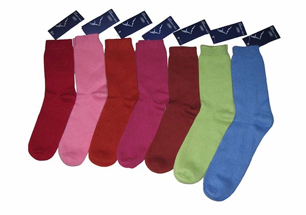 Разновидность козьей шерсти – кашемир (пашмина), который получают из подшерстка горной козы. Этот материал достаточно дорогой из-за ограниченного количества такого вида животных. Но носки из кашемира особенно износостойкие и теплые. При этом они очень тонкие и легкие.