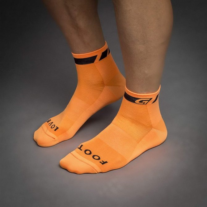 Спортивные носки легко спутать с повседневными. Но они различаются составом. В производстве носков для занятий спортом в состав ткани обязательно добавляют синтетическое волокно: лайкру, полиамид. Это придает изделиям эластичность, они лучше ложатся по ноге без образования складок и морщинок. Для плотного обхвата ноги на конце носка размещают мягкую резинку, не препятствующую нормальному кровообращению в стопе.