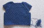 - 9 лицевых рядов: 1 воздушная петля, 1 лицевая, накид, 5 лицевых, накид, 1 изнаночная (линия реглана), накид, 15 лицевых (спинка), накид, 1 изнаночная, накид, 1 лицевая, 1 воздушная петля.