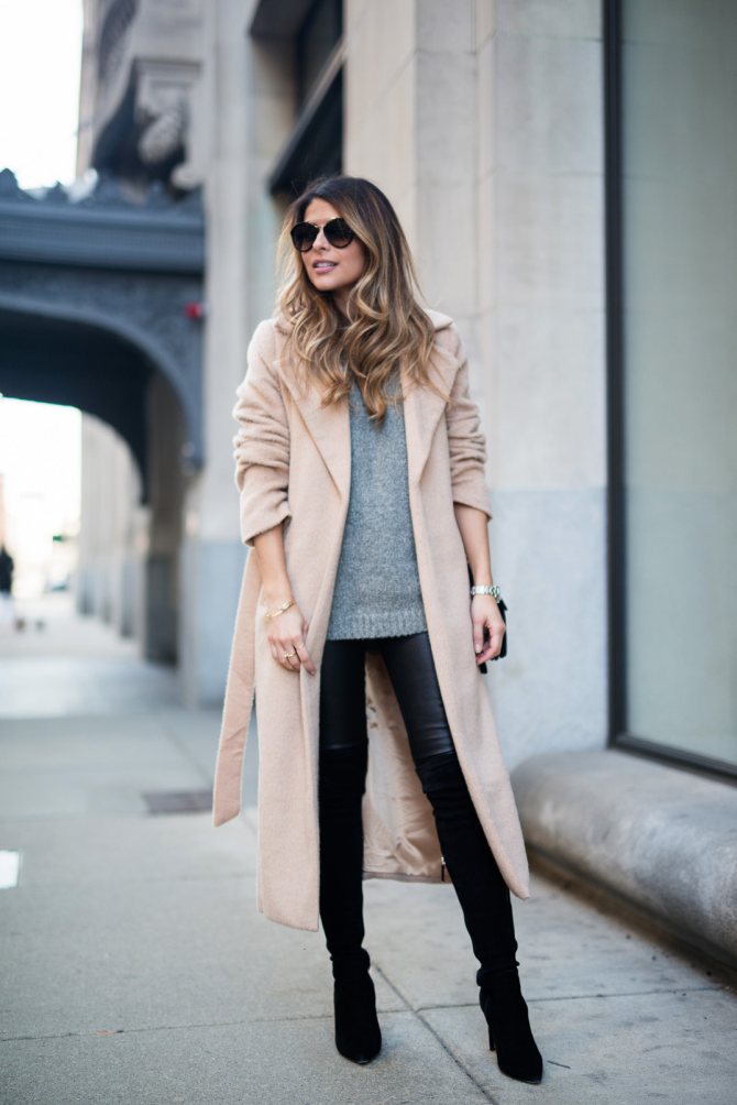 Лично мне очень нравится сочетание ботфорты + удлиненный свитер грубой вязки, из-под которого буквально на несколько сантиметров выглядывает подол шифонового платья или юбки. И не забываем про «правило 15 сантиметров»!