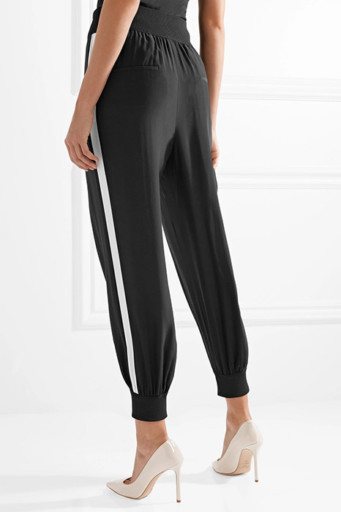 Пижамный стиль все еще в моде – рекомендуем на лето 2021 или 2022 облачиться в шелковый топ и черные штаны палаццо.