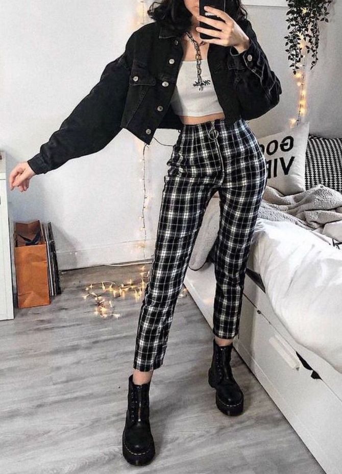 Смотрите еще несколько фото, что носить с черными брюками – свитер, пиджак, блейзер или свободную клетчатую рубашку.