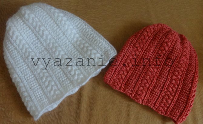 Ещё один вариант шапки бини. Она связана узором «цепи».