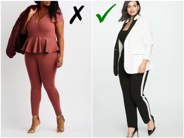 Также можно без сожаления попрощаться со штанами-афгани и брюками-галифе. Сомнению подлежат и вещи из хлипкой тонкой ткани. Например, легкий трикотаж мгновенно подчеркивает любые изъяны. Под запретом и блестящие и рельефные фактуры с такой же функцией.