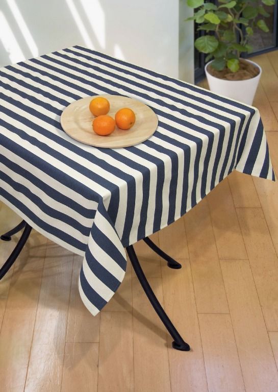 - Полоски – принт соотносится со скандинавским стилем оформления. Неярко выраженные полосы подойдут для повседневного украшения столешницы, более яркие уместны для вечеринок.