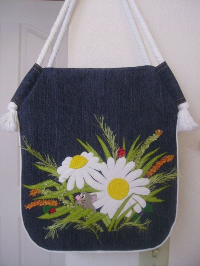 Имея в арсенале пару старых рабочих брюк разного оттенка вполне можно рискнуть сшить дорожную сумку своими руками из джинсовой ткани.