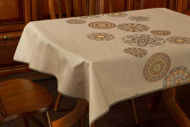 К тефлону давно привыкли. Благодаря пропитке политетрафлуороэтиленом тефлоновая скатерть обретает уникальные свойства. Teflon пропитывает только волокна, пространство между ними остается. Скатерть сохраняет воздухопроницаемость, дышит, остается приятной на ощупь.