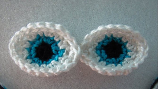 Начинается вязание с глазного яблока, соответственно, необходимо брать нитки белого цвета.