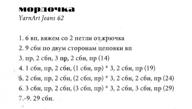 - нитки YarnArt Jeans основного цвета и немного белого и черного для оформления