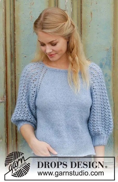 Красив и джемперок цвета пудры с прямыми рукавами в три четверти. Тут более навороченный рисунок, тем и симпатичнее, и вязать интересней.